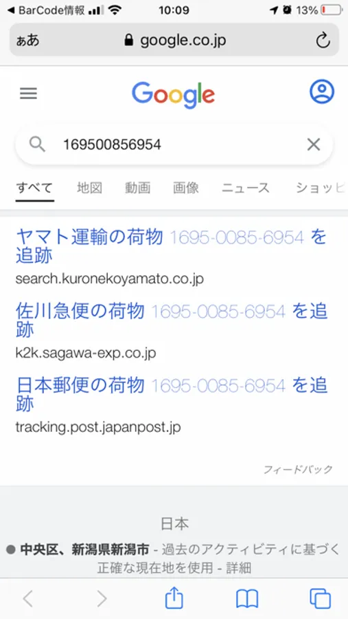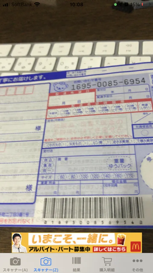 スキャナー(Z) は「お問い合わせ番号」のBARCODEをスキャンして荷物追跡ができます。