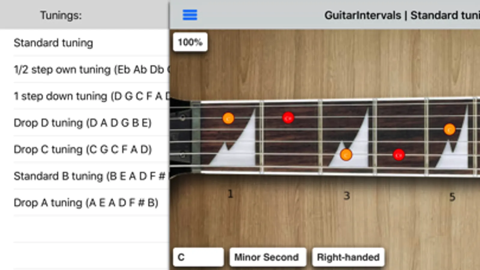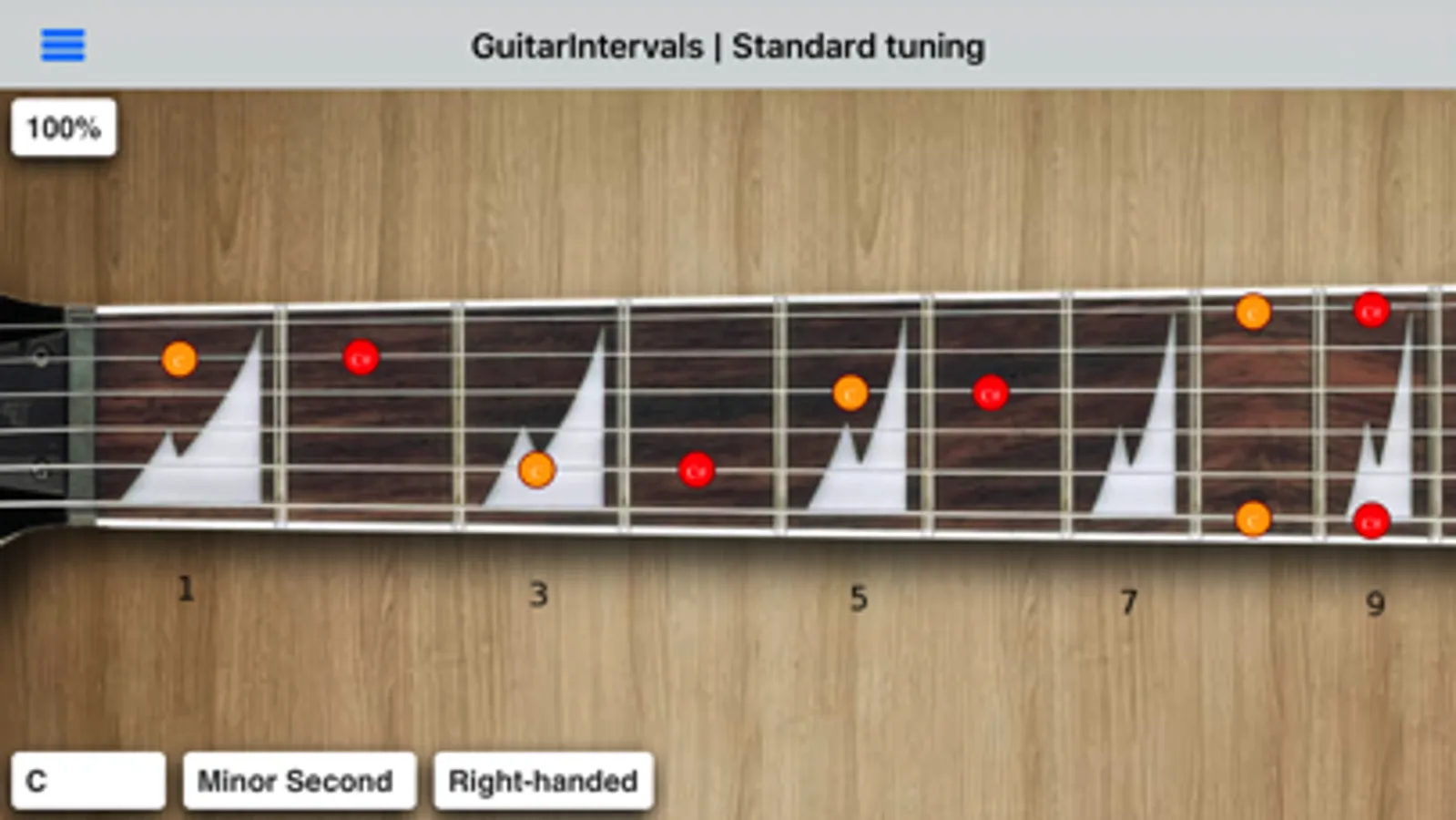 This is free app to learn intervals on guitar neck. Click on the note to play it. It has intervals for standard and some drop tunings.