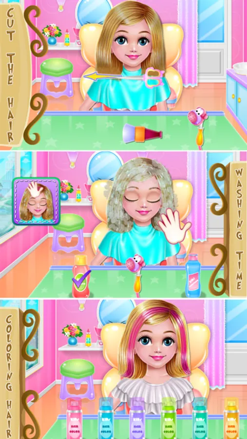 There are certain skills you need to depend on in this girl game, but if you just put your imagination to work and simply let your creative spirit to be free you will definitely make a good impression. This dress up game offers you the opportunity to handle more than one domain and because of the hairstyle part and the dressing one, you will be going through many processes to complete the required tasks. Go to the salon and prepare this little lady for the washing and the moisturizing phase. Once the hair is all cared and tidy you might choose the way you will arrange it. Take that cool haircut you want, choose the proper outfit for it and don't forget to complete it with some stunning accessories. You just have to focus on your makeup skills and all the other tasks will become easier once you've seen how they act. Finalize the process and move to the fun part where you are going to play with colors and different styles. Adopt a positive attitude and create the desired makeup in this girl game. Keep that in mind and choose the color of the eyes, the hairstyle and then put on some pretty accessories, like jewelry, to match the total view. Embrace a different look and try to have fun while you are transforming this cute girl and don't miss the fun.