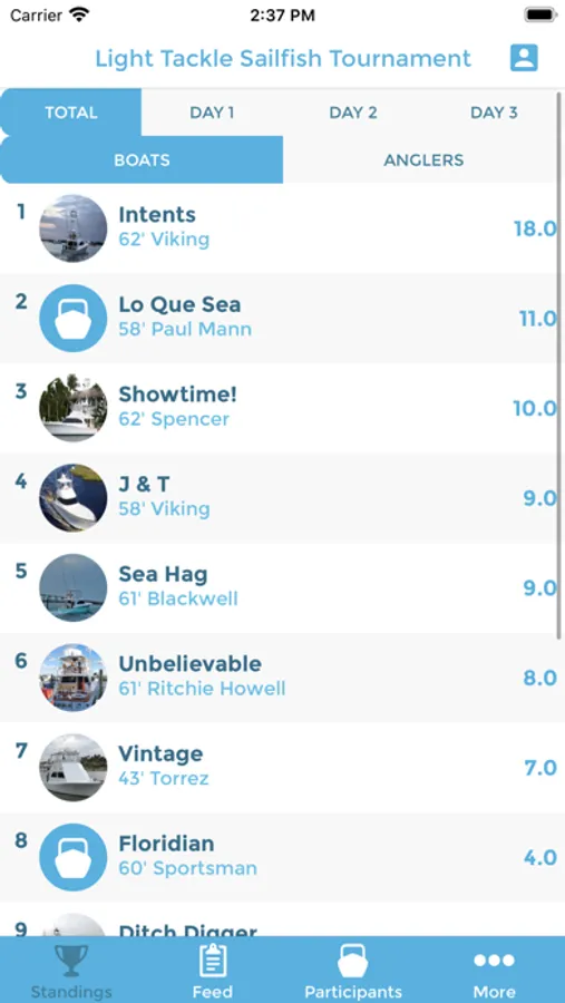 Follow your favorite boats and anglers to be notified of all scoring activity.