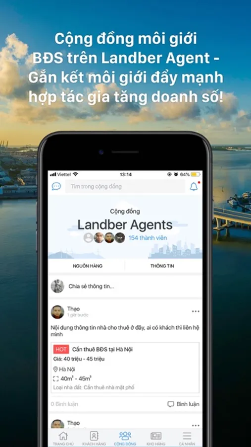 Landber Agent là nền tàng ứng dụng công nghệ hỗ trợ các nhà môi giới, sàn giao dịch bất động sản xây dựng và quản lý cộng đồng của mình. Với những tính năng ưu việt và duy nhất hứa hẹn mang đến những trải nghiệm tuyệt vời cho nhà môi giới.