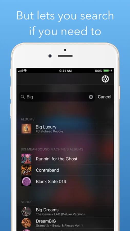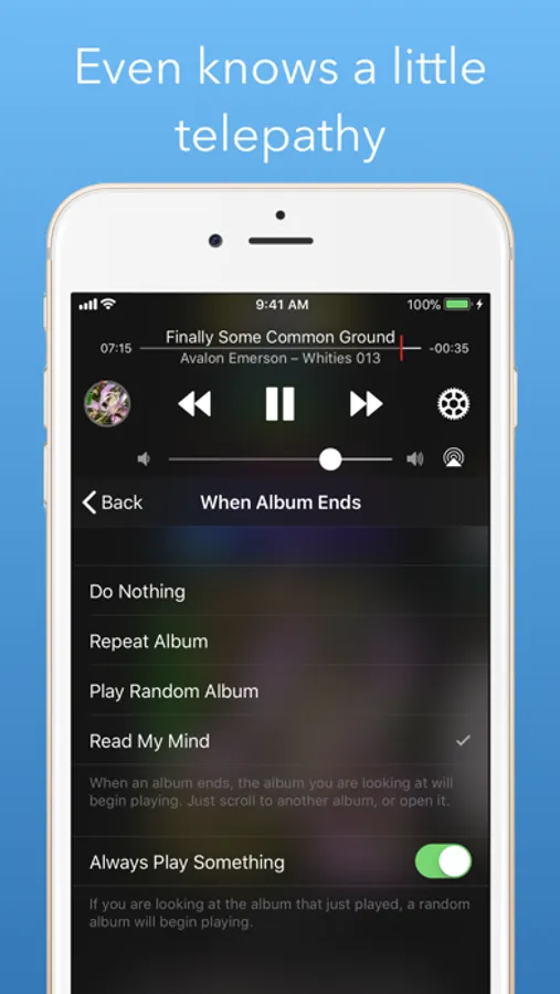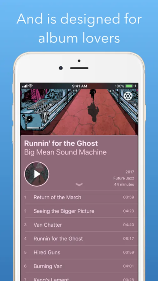 There are little flourishes everywhere – like an animated turntable, which you can tap on to go to the currently playing album; or the 'Read My Mind' feature, where you can cue up the next album simply by scrolling to it, without thinking about what button to tap or managing a playback queue.