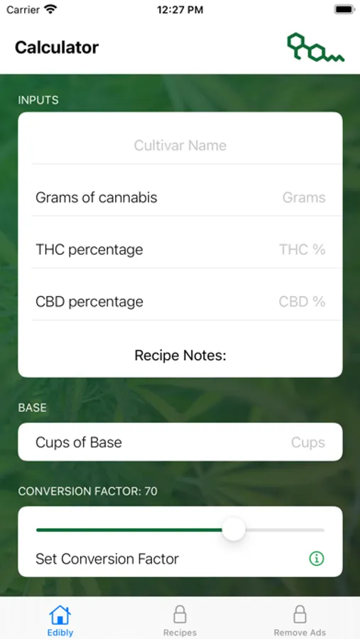 The Edible THC Calculator can help take the guesswork out of dosing homemade edibles. With simple input fields for thc%, weight, desired mg per unit, and a sliding scale for the 'conversion factor' this calculator can help you better predict the potency of your creations.