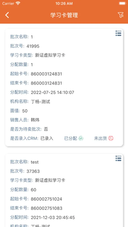 (2)提供学习卡信息查询