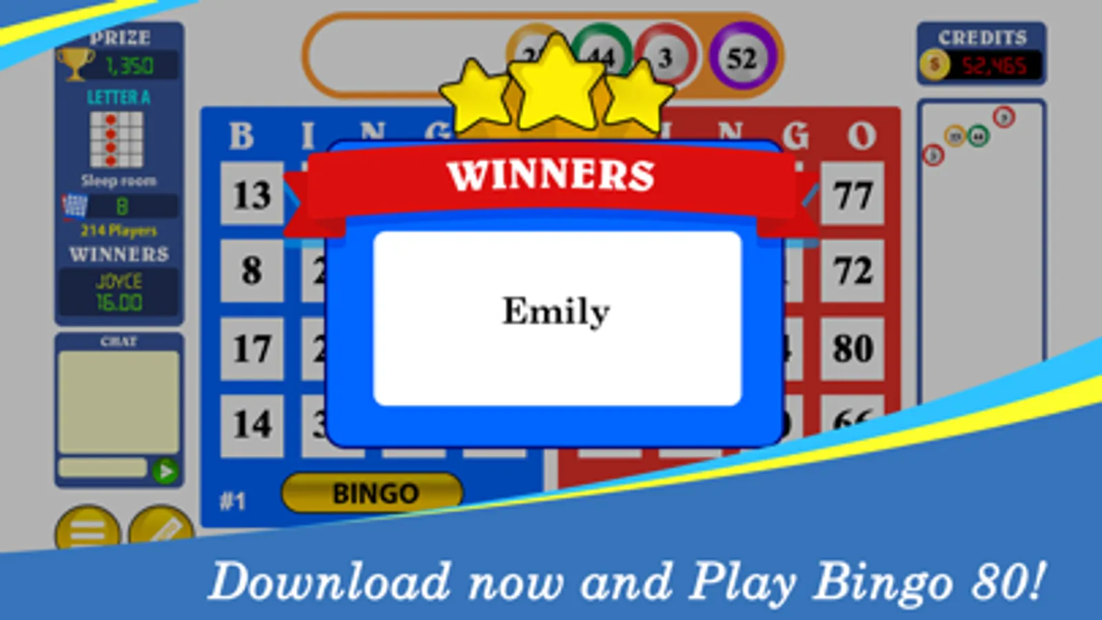 - Socialize and chat in real-time with other Bingo 80 players while you play Bingo 80 game.