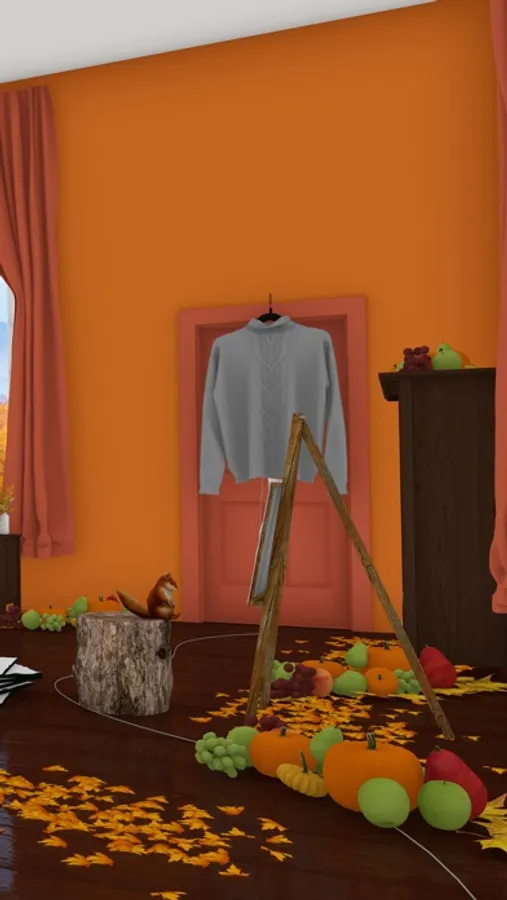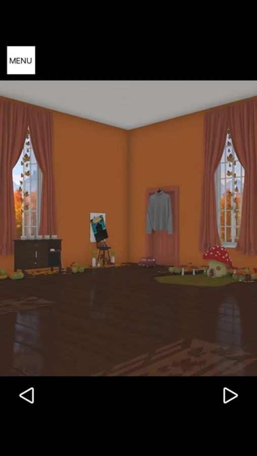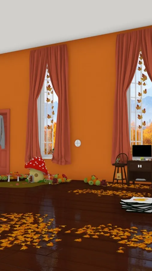 You are in a house where autumn leaves, mushrooms and squirrels are lived.