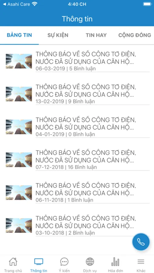- Thông báo phí dịch vụ hàng tháng.