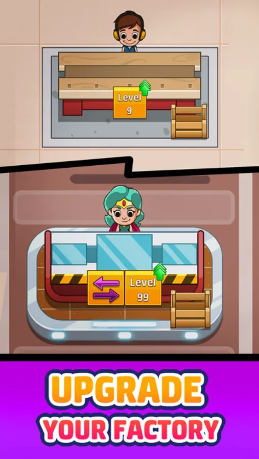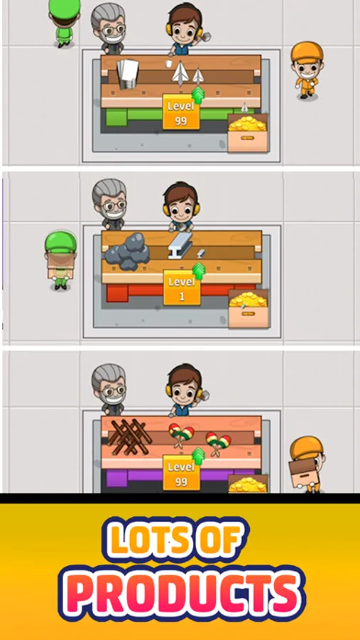 Download the game for free and build lots of workstations in your multiple factories that produce cool stuff to collect idle cash.