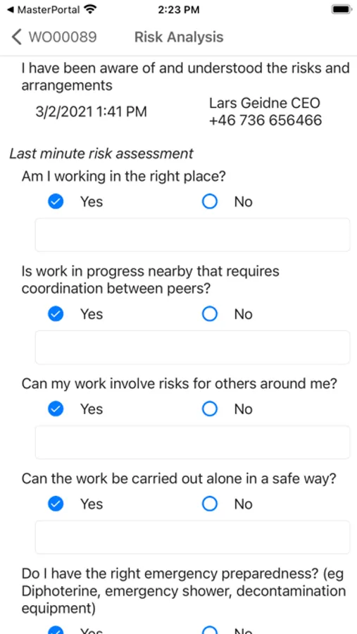 • Answer to Risk Assessment based on your Role and authorization