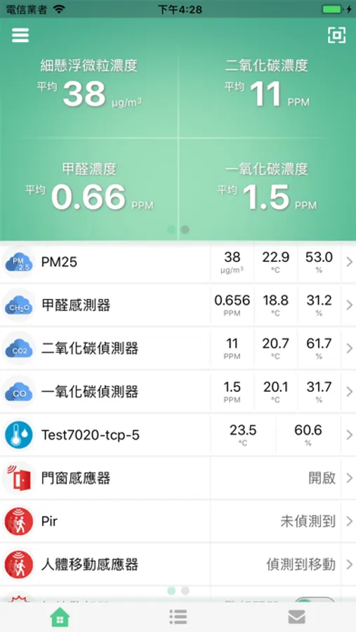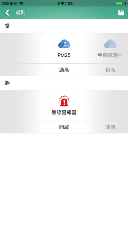 物聯管家 App 能透過無線訊號接收感測器數據,並在圖型介面上呈現當前狀態。