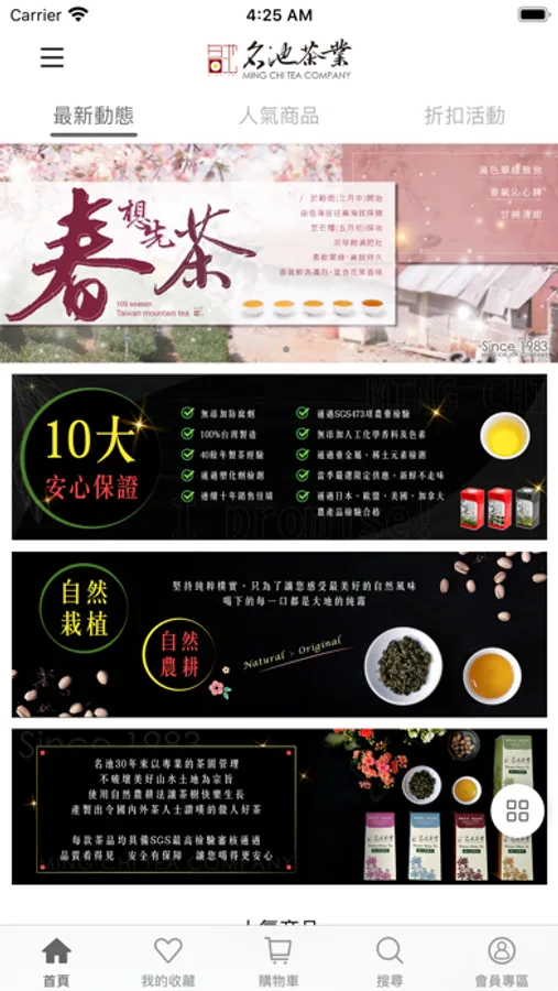 名池茶業會推出不定時的優惠訊息,還會有優質贈品,透過APP可以即時獲得最新推播資訊,讓您不會錯過任何好康活動。無論是想喝清香、濃香型,青茶或烘焙茶,高山茶、紅茶等等茶品,都會詳細一一為您說明喔! 絕對可以在名池茶業官網APP找到最適合您的專屬茶品!