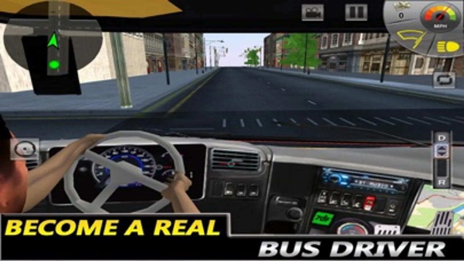 Use the steering to drive hill bus.