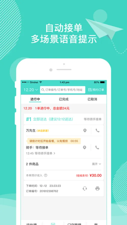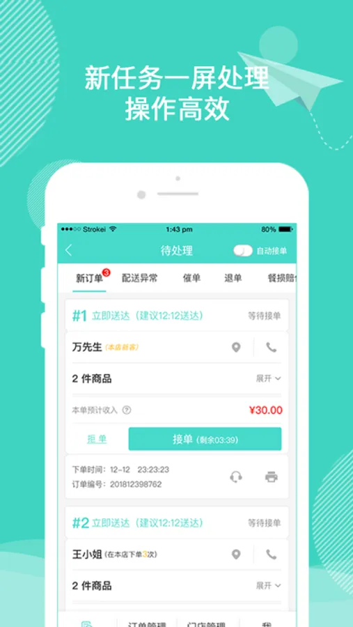 新订单、配送异常、催单、退单、残损赔付一屏处理,操作更便捷。