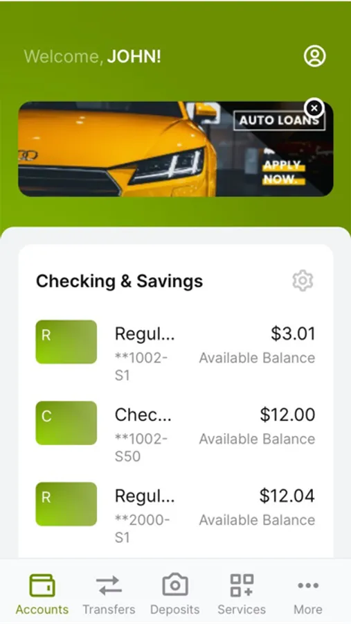 · Transfers: account to account, scheduled, pending ACH and check withdrawal transfers are available