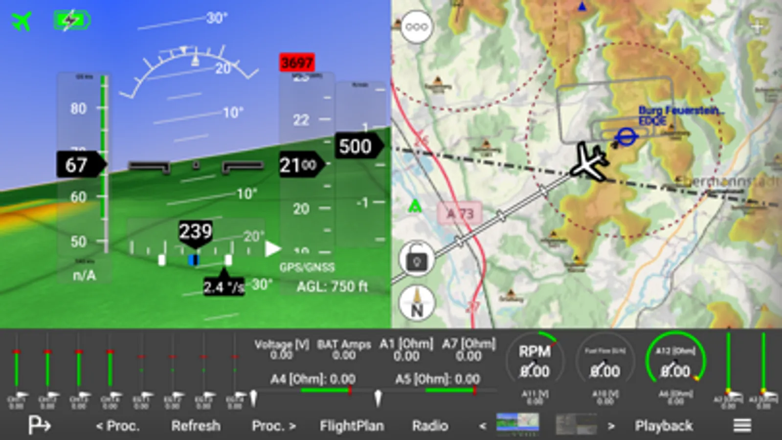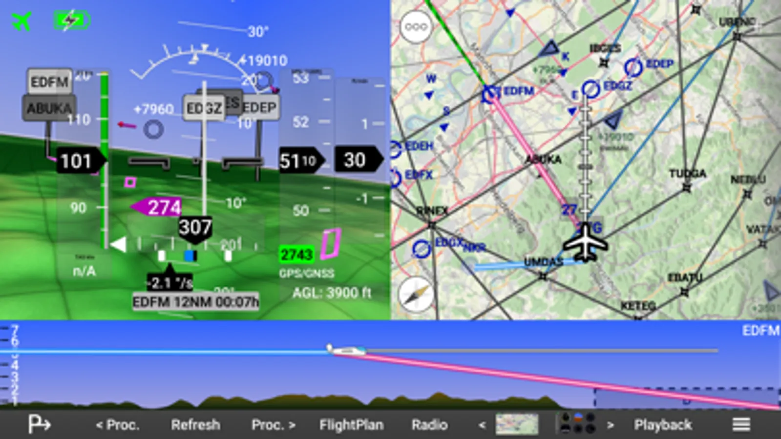 Therefore, it contains all relevant functions of a modern glass cockpit on a tablet, as well as the advantage of redundancy due to complete independence from the built-in avionics.