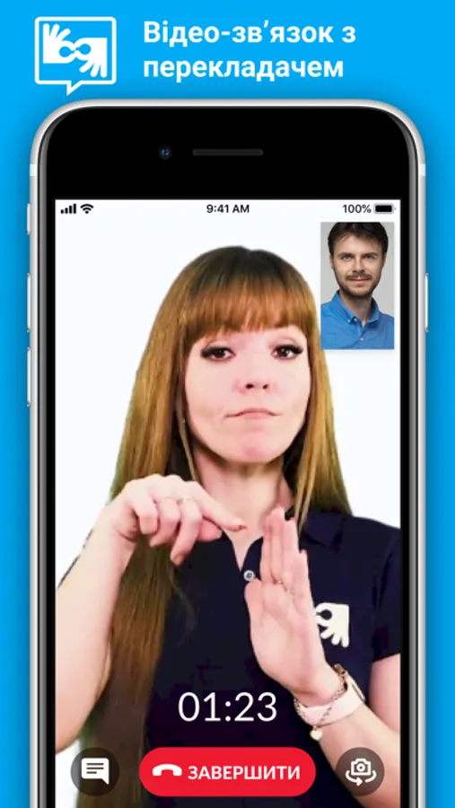 За допомогою додатку людина з порушенням слуху може викликати перекладача жестової мови в онлайн режимі в будь-якій життєвій ситуації. Сервіс працює 24/7.