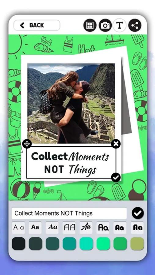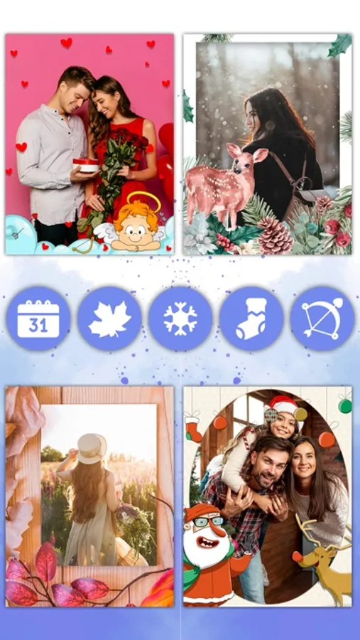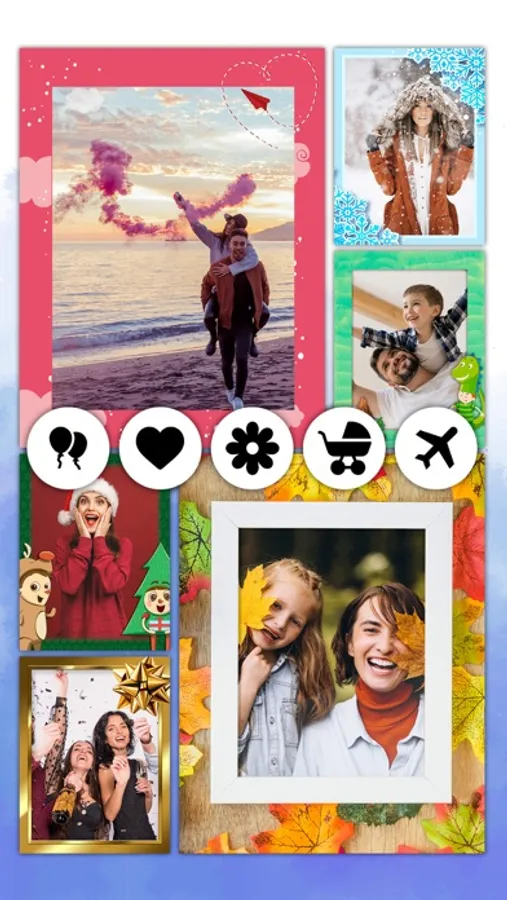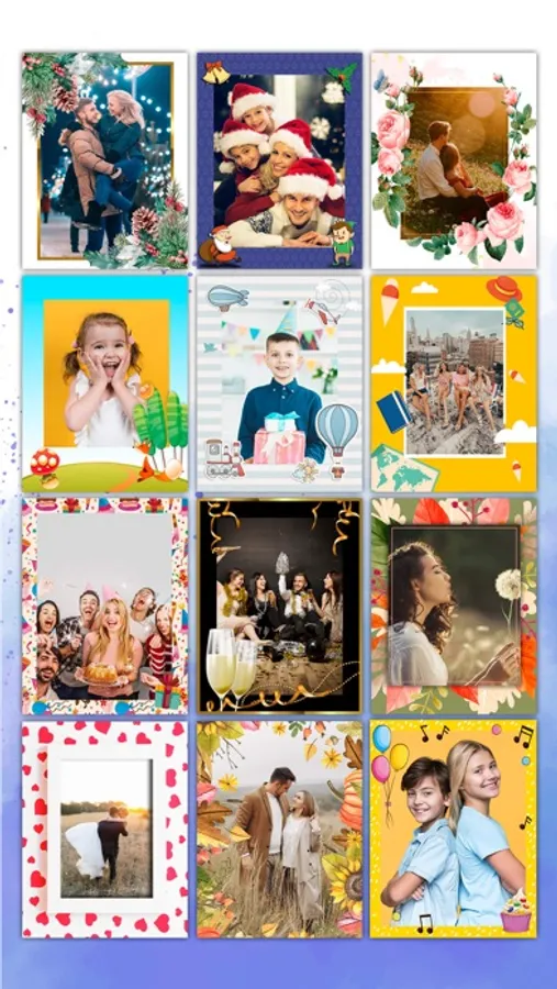 Choose your favorite category and start to edit your photos with notes or messages. Discover the best photo frames collection for your images. Unlock special frames that are created only for you.