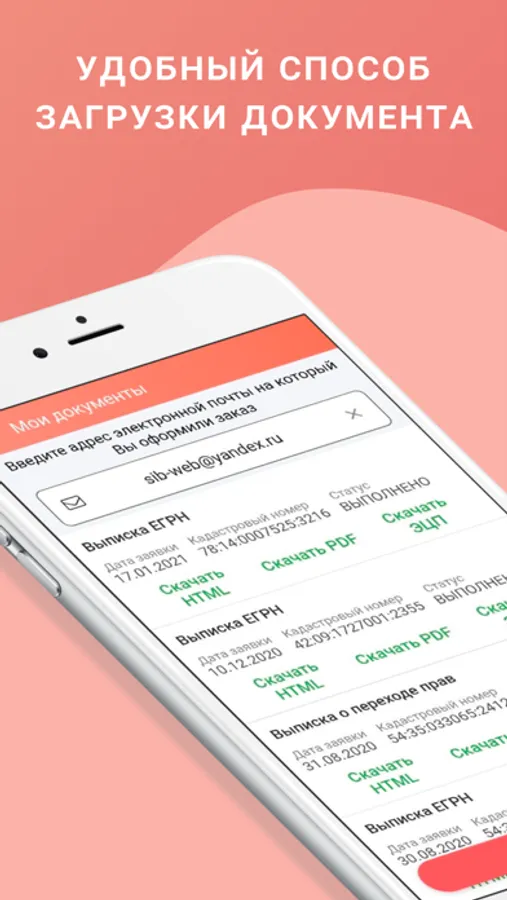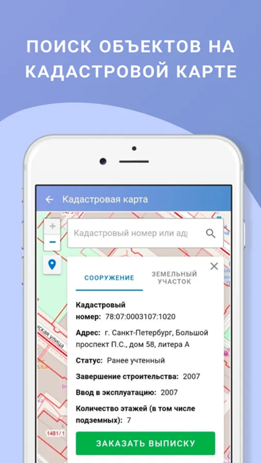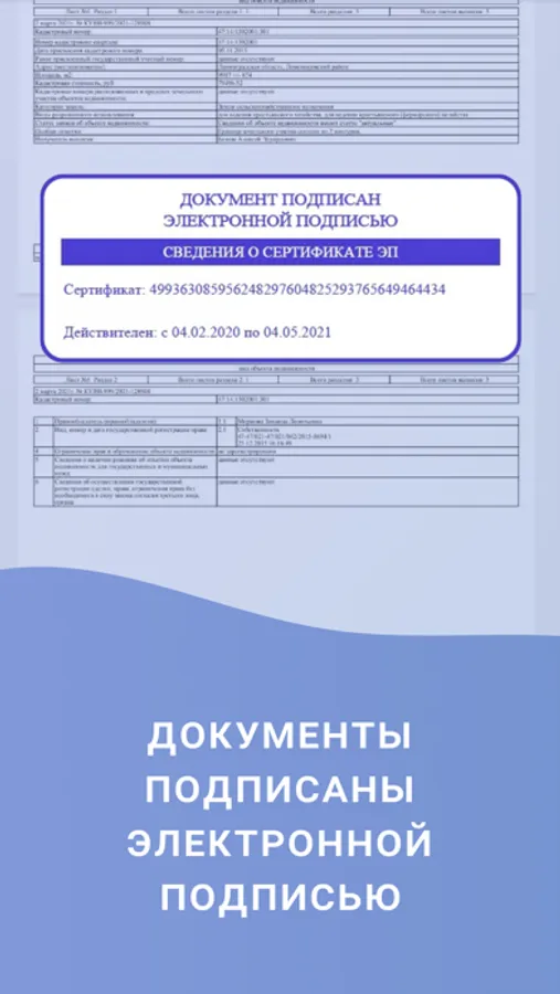 Приложение позволяет быстро, используя минимальную информацию о недвижимом объекте, получить информацию на квартиру, частный дом или земельный участок из ЕГРН.