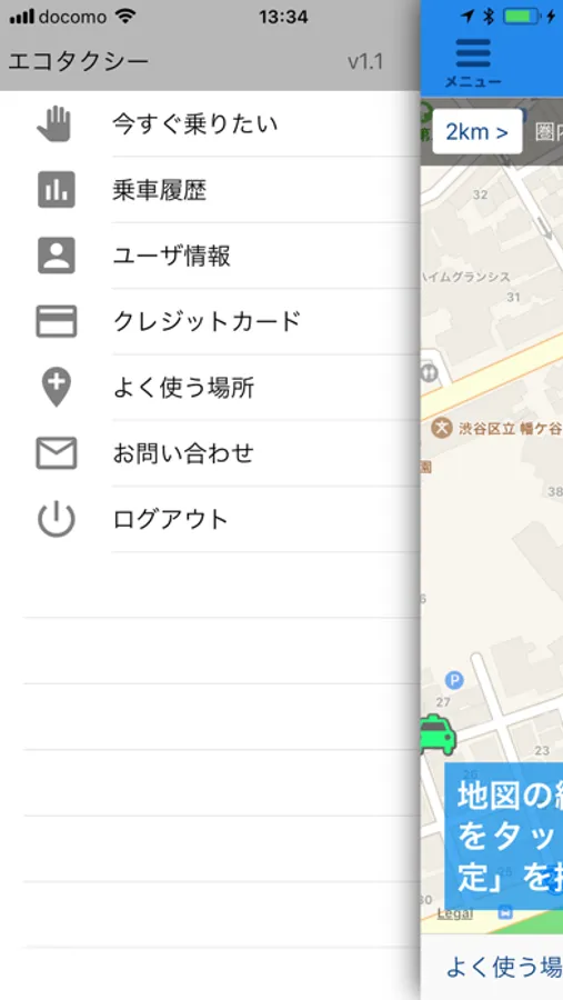 関東格安料金(初乗り310円、迎車料金290円、深夜割増無し、長距離3段階割引)のエコタクシー専用配車アプリ「エコタクシー」はエコタクシー利用者が、いちいち配車室に電話しなくても、スマフォ上に、地図を表示させ、自分が乗りたい位置を、ピンポイントで指定して呼べる便利なアプリです。