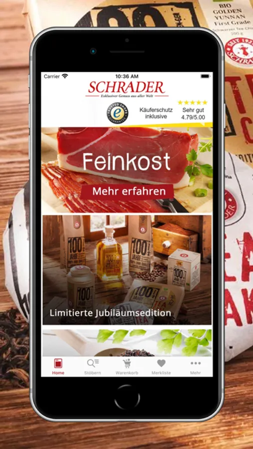 Mit der Schrader Shopping-App bestellen Sie Tee, Kaffee, Feinkost & Delikatessen bequem nach Hause. Profitieren Sie von vielen Angeboten, Gutschein- und Sonderverkaufsaktionen – exklusiv für Nutzer der App.