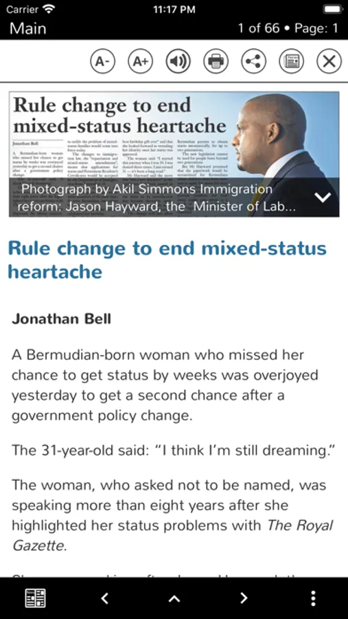 The Royal Gazette app provides you the very best Bermuda-based news stories and features on your favourite device. View real-time updates and the daily print editions all in one app with templates tailored for tablets and smartphones. The app uses multi-touch screen features to provide fast and easy navigation. The daily print e-edition lets you read the newspaper multiple ways and includes the ability to download and save individual articles or pages to enjoy offline and when you are on the go.