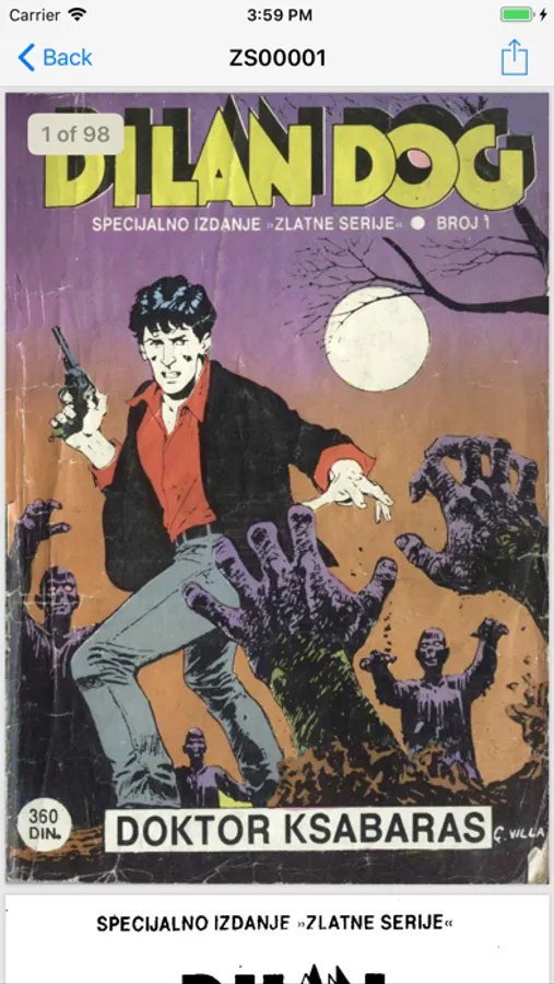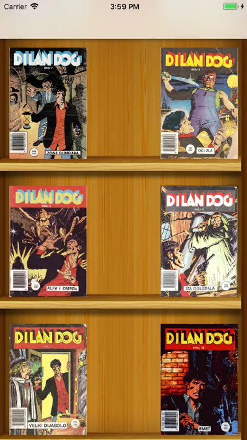 Aplikacija pokriva svih 59 stripova Dylan Dog specijalnog izdanja Zlatne Serije, koji su izašli u vremenu od 1987 - 1993.
