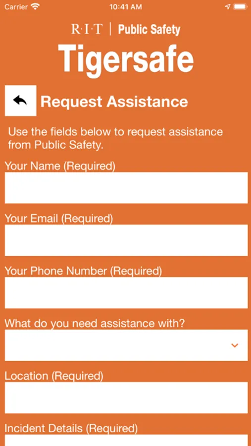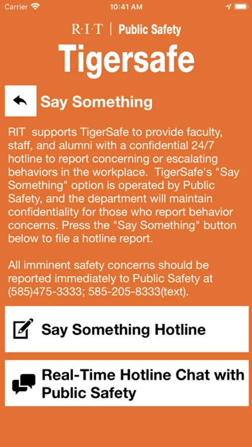 - Chat with Security: Communicate live with safety staff at RIT via chat.