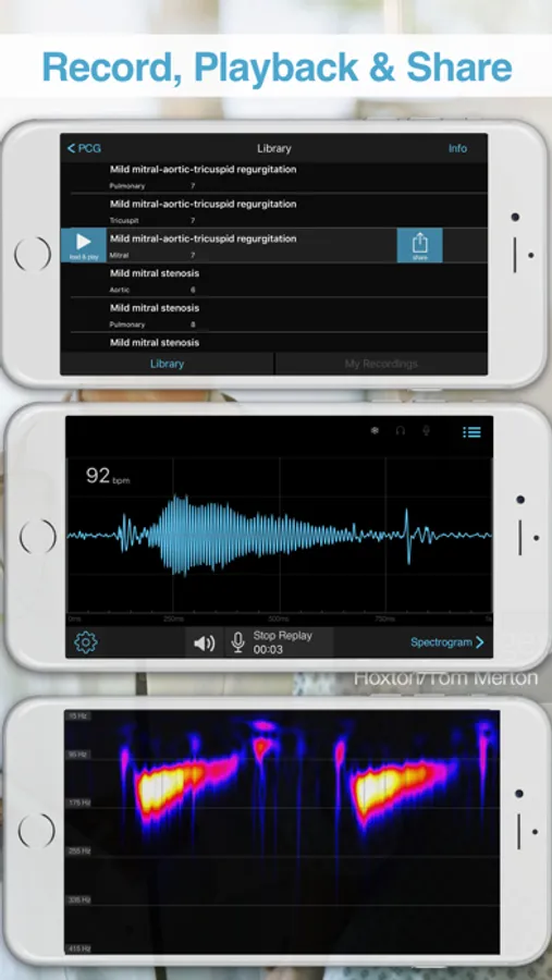 You can also visualize your own heart waveform. You can record, playback and share your own sound files with your friends.