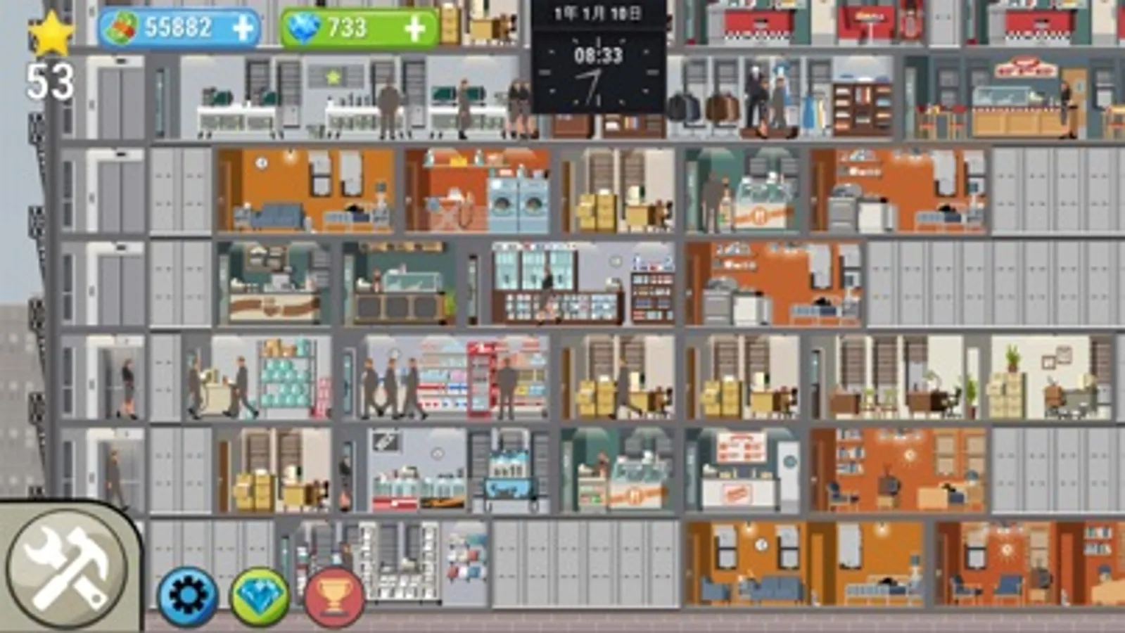 Full customization: create multiple services (bars, specialty shops, conference rooms…) and amenities such as pool halls, arcades, executive lounges… configure their layout, choose the contents of the menu for your restaurant and even employ live performers to entertain your guest