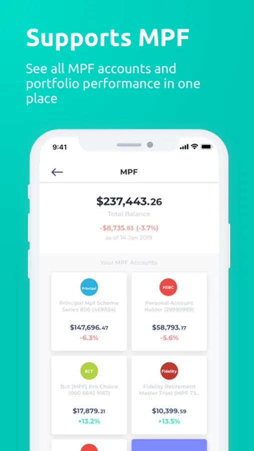 * Linking to 20+ bank and e-wallet accounts, showing your credit card transactions, investments, mortgages, loans and MPF within minutes