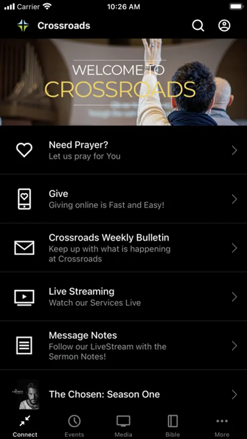 View services, connect and get plugged in at Crossroads, get notes, and tithe online.
