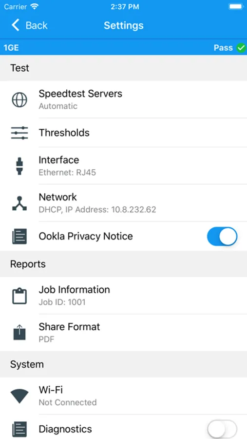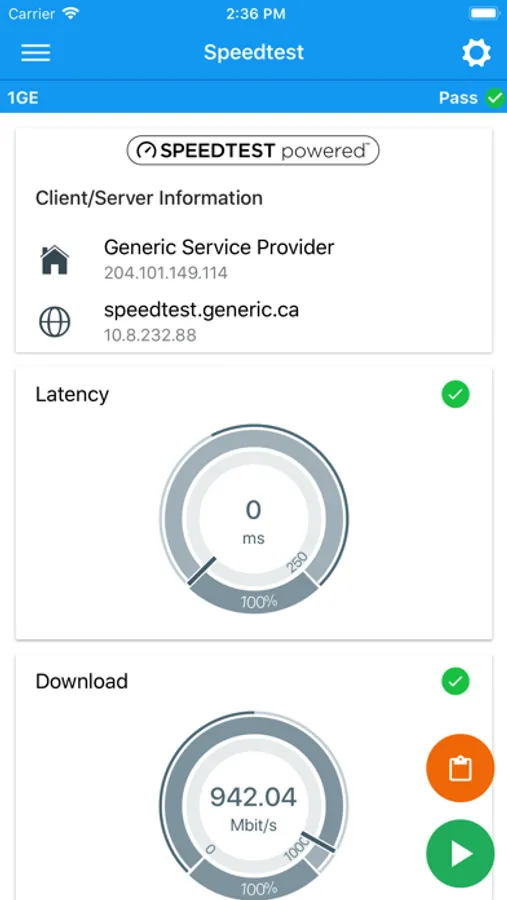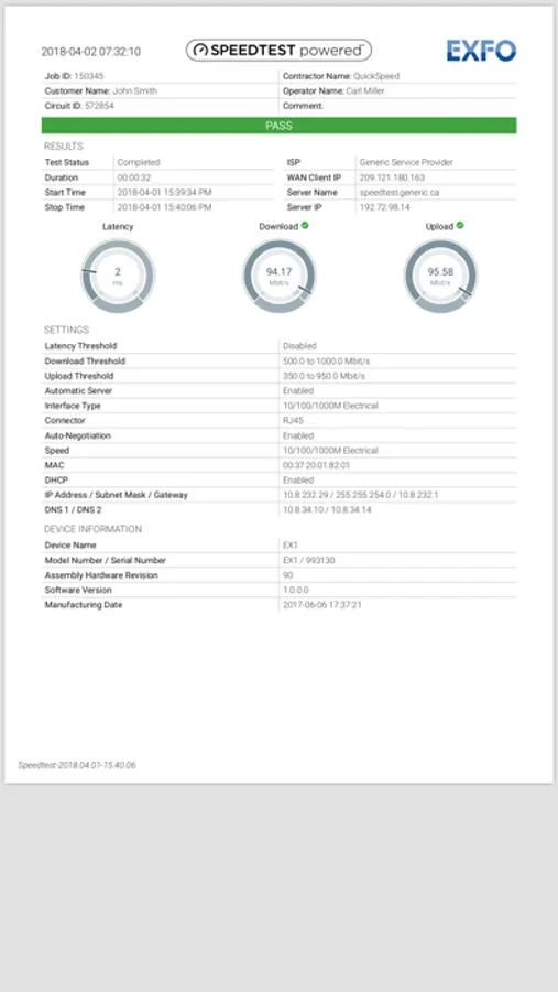The EX1 provides Ethernet, Wi-Fi (1-5), GPON and XGS-PON interfaces to validate throughput (Download/Upload) and latency using the world-leading Speedtest® powered by Ookla® algorithm, giving repeatable and reliable metrics, every time.