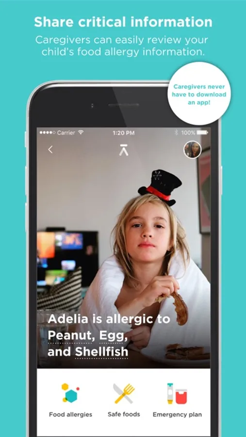 **The FIRST and ONLY app that enables PARENTS to SECURELY SHARE their child’s essential FOOD ALLERGY information with ALL CAREGIVERS: Teachers, Coaches, Babysitters, Grandparents, Bus Drivers, Friends, Anyone!