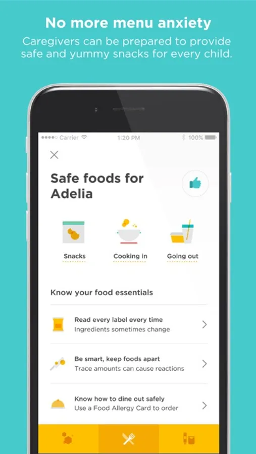 *App Includes a CHEF CARD for restaurants listing child’s food allergy info
