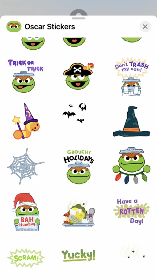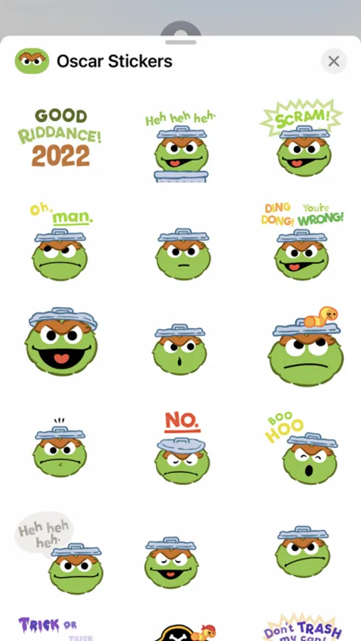 If you’re not here looking for some truly silly stickers, then…SCRAM! Because Sesame Street’s grumpiest neighbor, Oscar the Grouch, is starring in his own pack of 29 comically grouchy emojis and animated stickers.