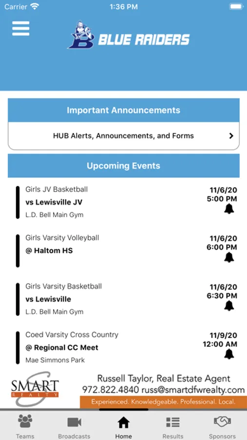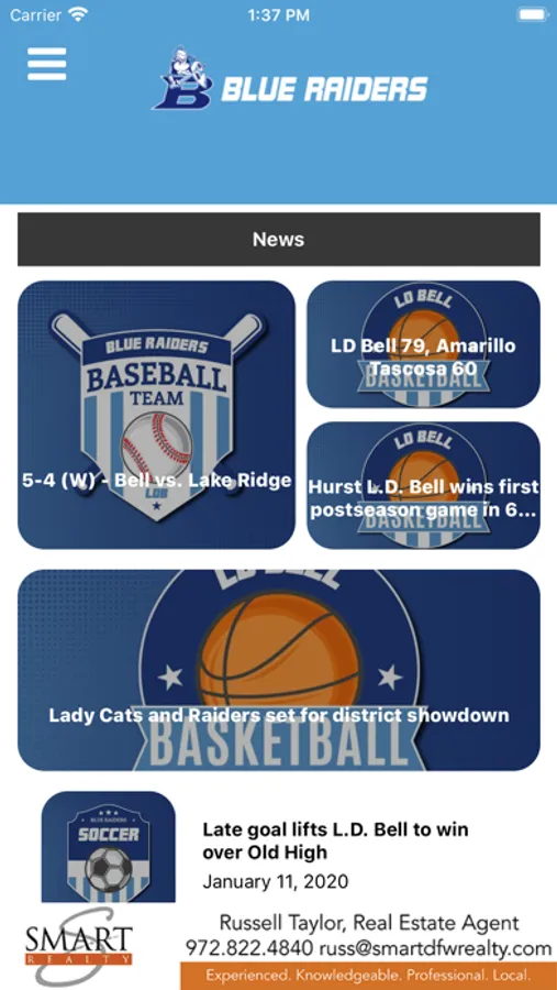 - Supporters: Special Thanks to local boosters and supporters of L.D. Bell Blue Raider Athletics with a directory including website and in-app calling.
