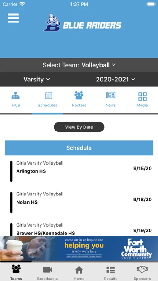- Active Home Screen Dashboard: Next Live Broadcast, Upcoming Games and all games over the next seven days.