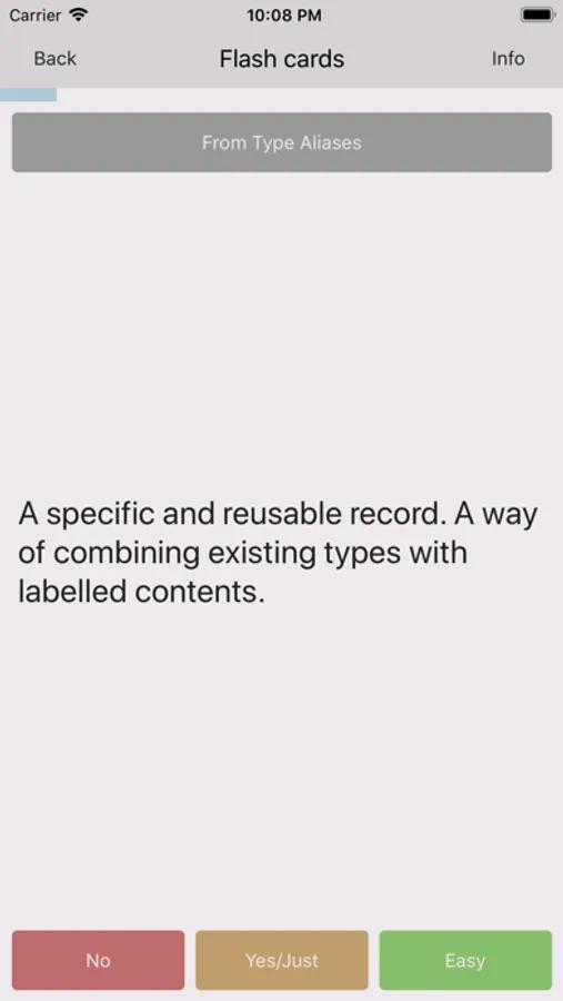 Often programmers will talk of trade offs between languages. That one 'Serious' language is hard, verbose but performant and that other little language is easy, quick, dirty but slow. (I have examples in mind, but sharing them seems ill advised!) Don't believe them. It is 2017 and you should demand all the things. Languages like Elm and Swift reject these kinds of false choices and give us concise, clear code, performance, safety and clarity. They are simply better than many common alternatives. I want to make it possible for you to learn Elm more quickly and more thoroughly than is otherwise possible, hence this Flash Card App.