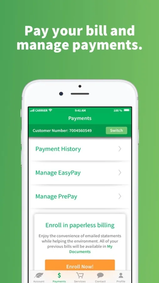 • Sign up for EasyPay or PrePay billing and save