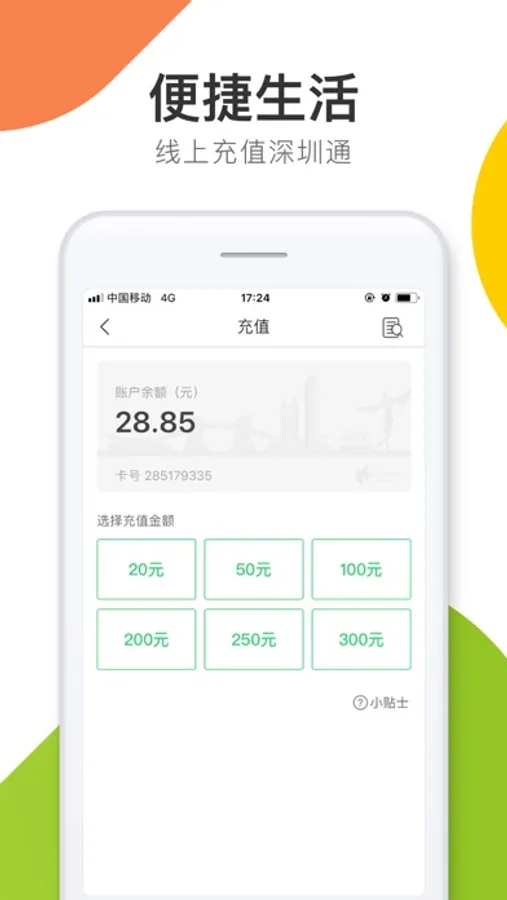 业务面覆盖手机深圳通手机客户端快速充值,公交地铁查询,每周生活优惠,各种便民活动等等,竭力满足市民便利出行,尽享城市各地优惠!