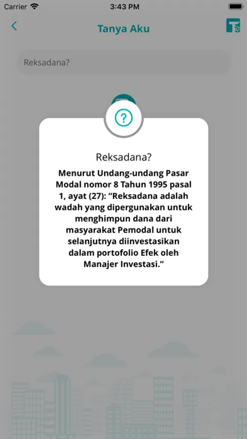 Dilengkapi fitur tanya-jawab yang memudahkan pengguna memperoleh informasi mulai dari laporan kinerja reksadana, informasi umum tentang reksadana, sampai jenis produk apa yang dapat membantu pengguna mencapai tujuan investasi