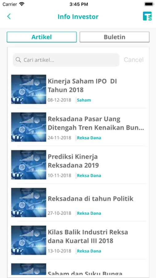 Jangan mau ketinggalan perkembangan terkini seputar reksadana. Banyak ilmu yang bisa didapat dengan membaca artikel pilihan TESSA setiap dua minggu sekali. Dilengkapi buletin Infovesta, yang akan menambah wawasan Anda seputar investasi.