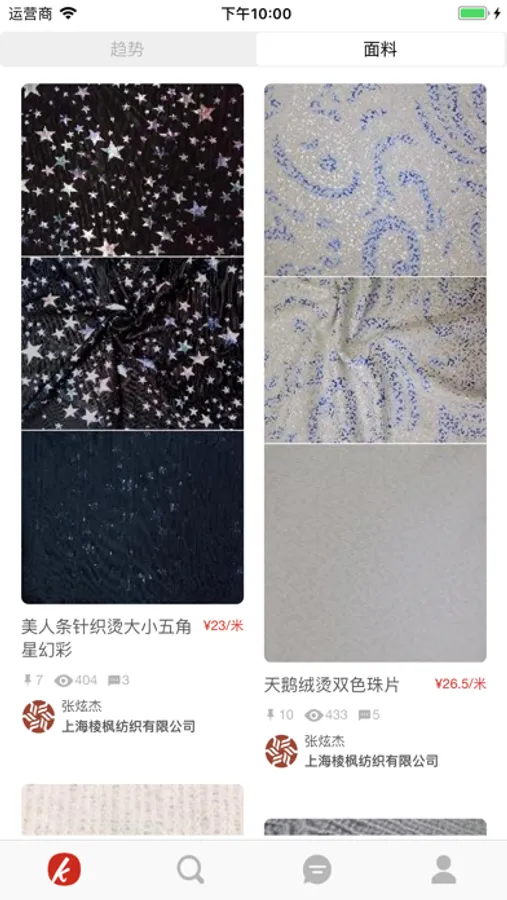 衣布天下是第三方服装面料交易平台,平台上可发布面料和趋势信息,采购商可下单购买面料