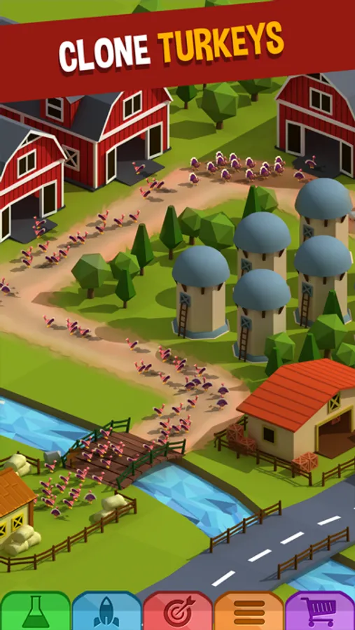 Tap like a tycoon and clone as many tiny turkeys as you can to grow your conglomerate and keep upgrading your barn to pocket exact MONEY you are owed from your consumer in this awesome 3D game! Play with swag and see the money come in from all angles, remember to have deep pockets. A meat roasting farming scenery township simulator with a swag that’s like no other - with dogs you can adopt! You can never have enough!