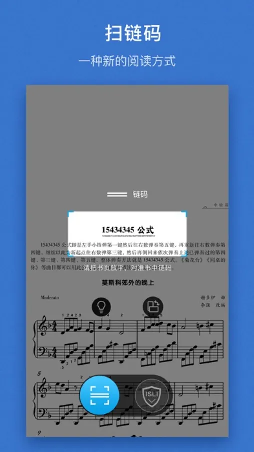 扫描印在纸质出版物上的链码,播放或阅读关联多媒体资源的增值阅读应用。
