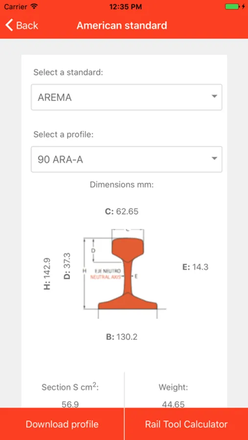 - get interactive information regarding standards and profiles for different rail product typology