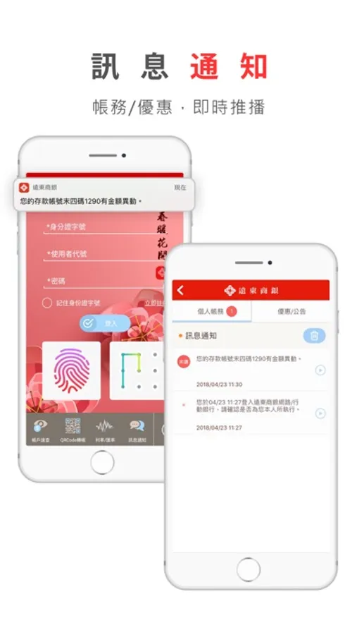 只要設定就能即時收到:刷卡消費、薪水入帳、ATM提款、基金扣款、定存到期…等通知。