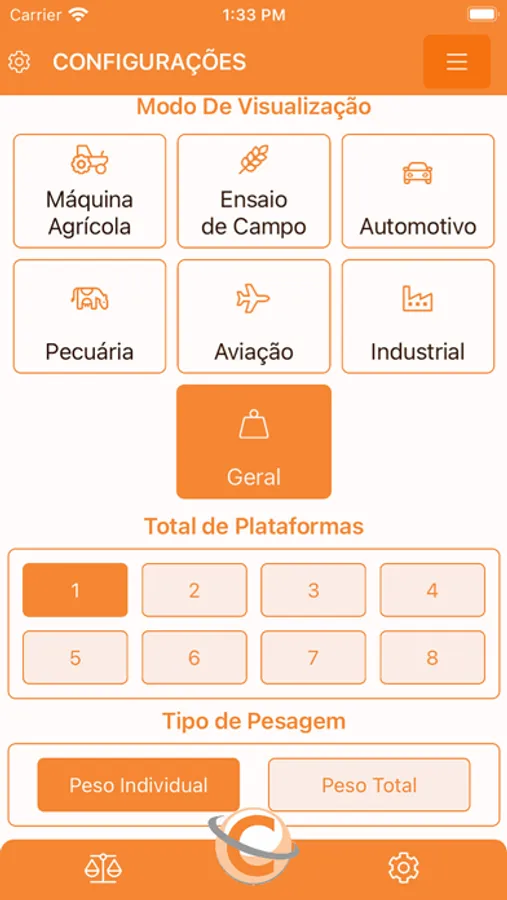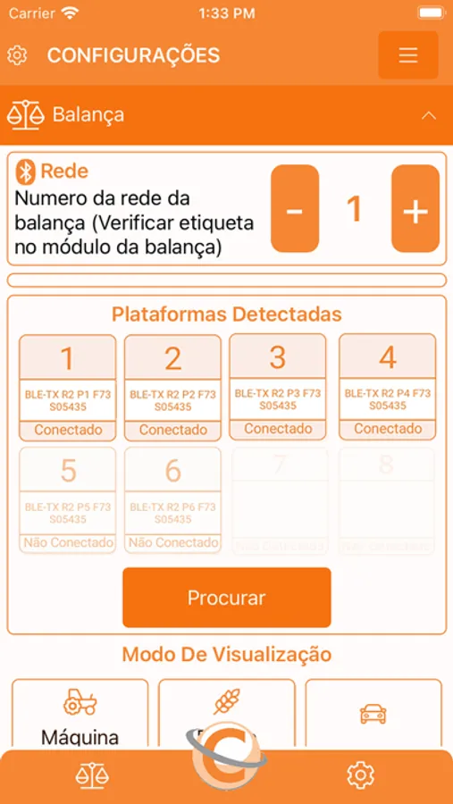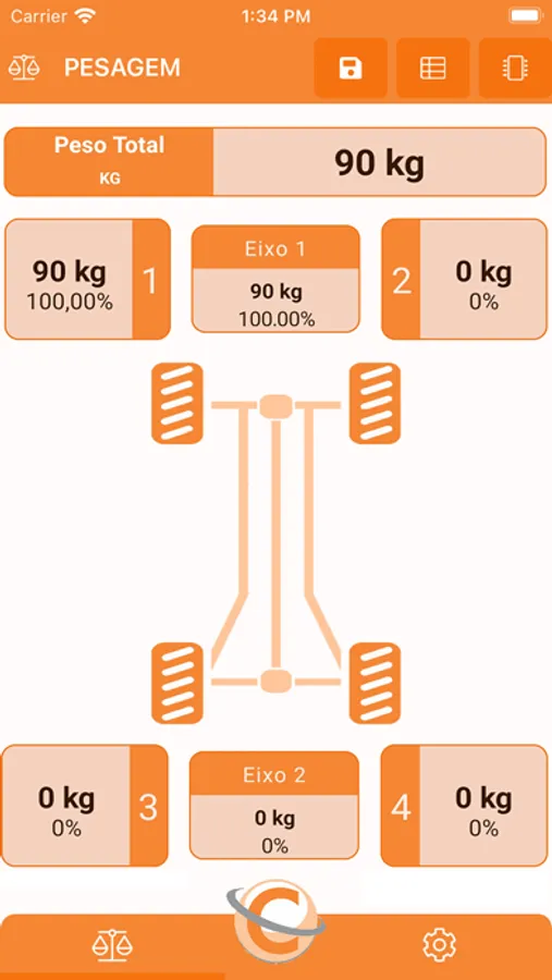 O AppCelmi se conecta as balanças sem-fio da Celmi, mostrando em tempo real as informações do peso total, peso individual, peso por eixo e percentuais de peso e eixos em relação ao peso total.