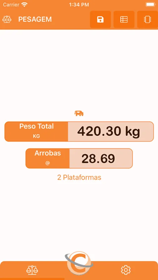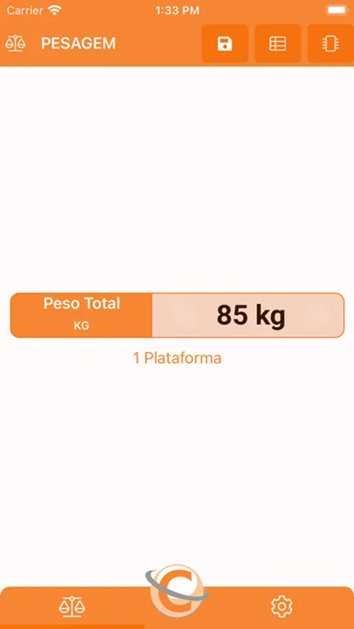 Pode-se salvar as pesagens para posterior visualização. As pesagens armazenadas podem ser exportadas para PDF ou CSV.