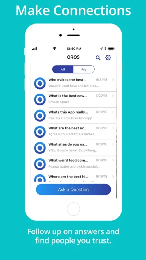 Ask questions and get advice on any topic - from where to eat, to what service providers to use, to creative ideas for gifts. With Oros, we make it quick and easy to get the answers you need and can trust from those who know best - real people. Life is full of questions and unexpected surprises, and with Oros the answers you’re looking for are just a message away.